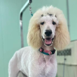 Lis’s passion for the art of grooming extends to the challenge of hand scissoring large breeds, with a particular affinity for breeds like Standard Poodles, Black Russian Terriers, and Irish Water Spaniels. Her dedication to perfecting her craft shines through in every groomed coat.