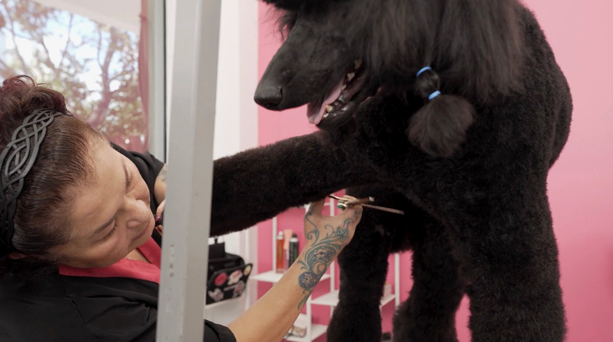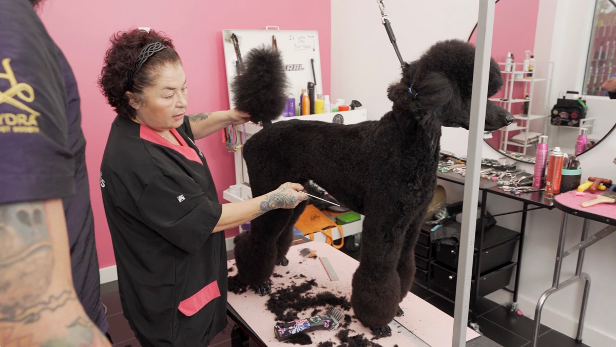 Pina is also deeply involved with Kiyara Poodles, Kerryfield Kennels, and Krizma Kennels, where she has bred and co-owned numerous champion Poodles and Kerry Blue Terriers. Her dedication to excellence and education has made her a beloved, well-known, and respected figure in the grooming community for good reason.